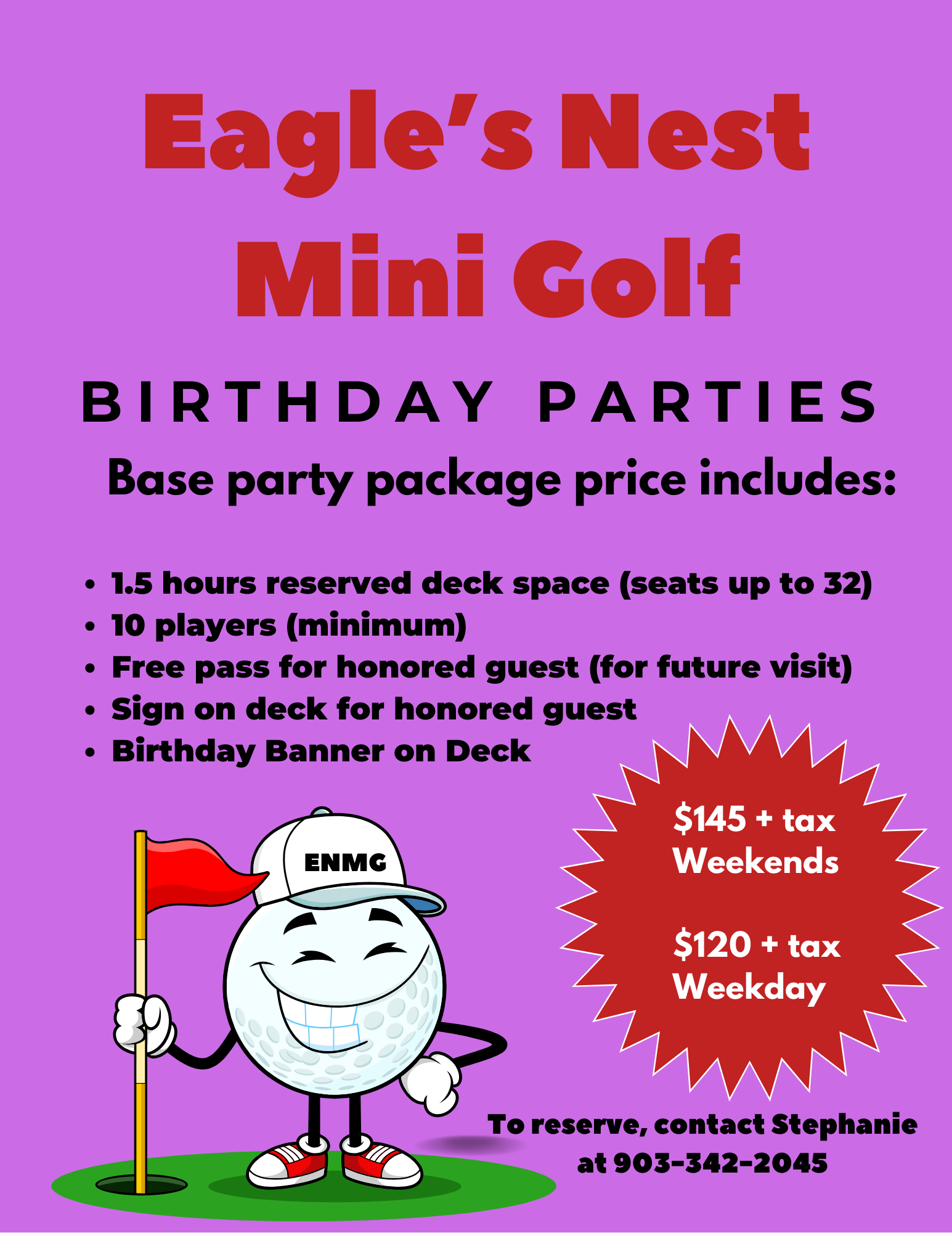 Pricing to the right is our base price package. Fridays after 6 pm - Sunday are considered weekend parties. Please see optional pricing below